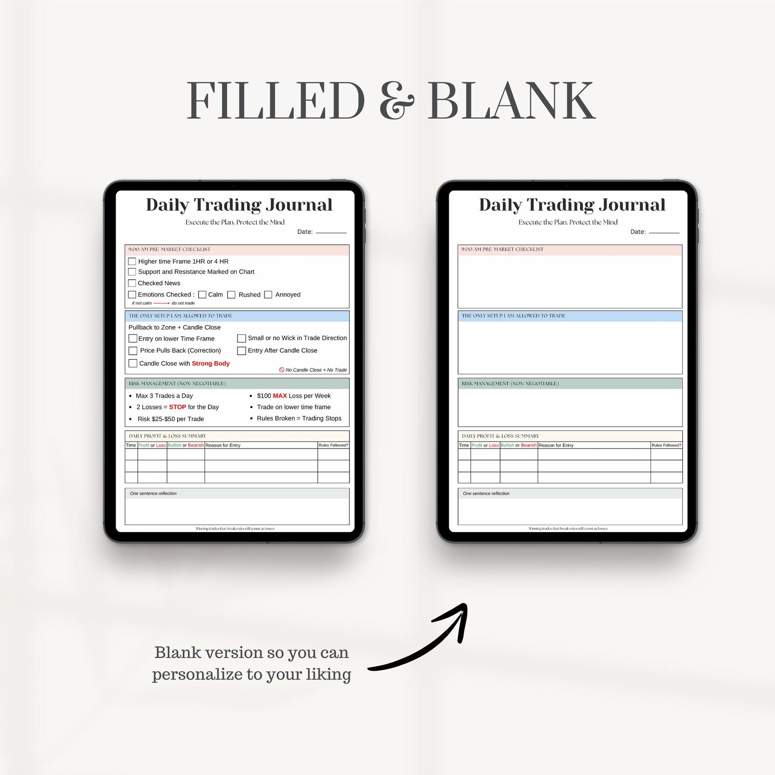 Daily Trading Journal PDF | Printable Digital Trading Journal | A4 | Filled Blank | Risk Management PreMarket Checklist